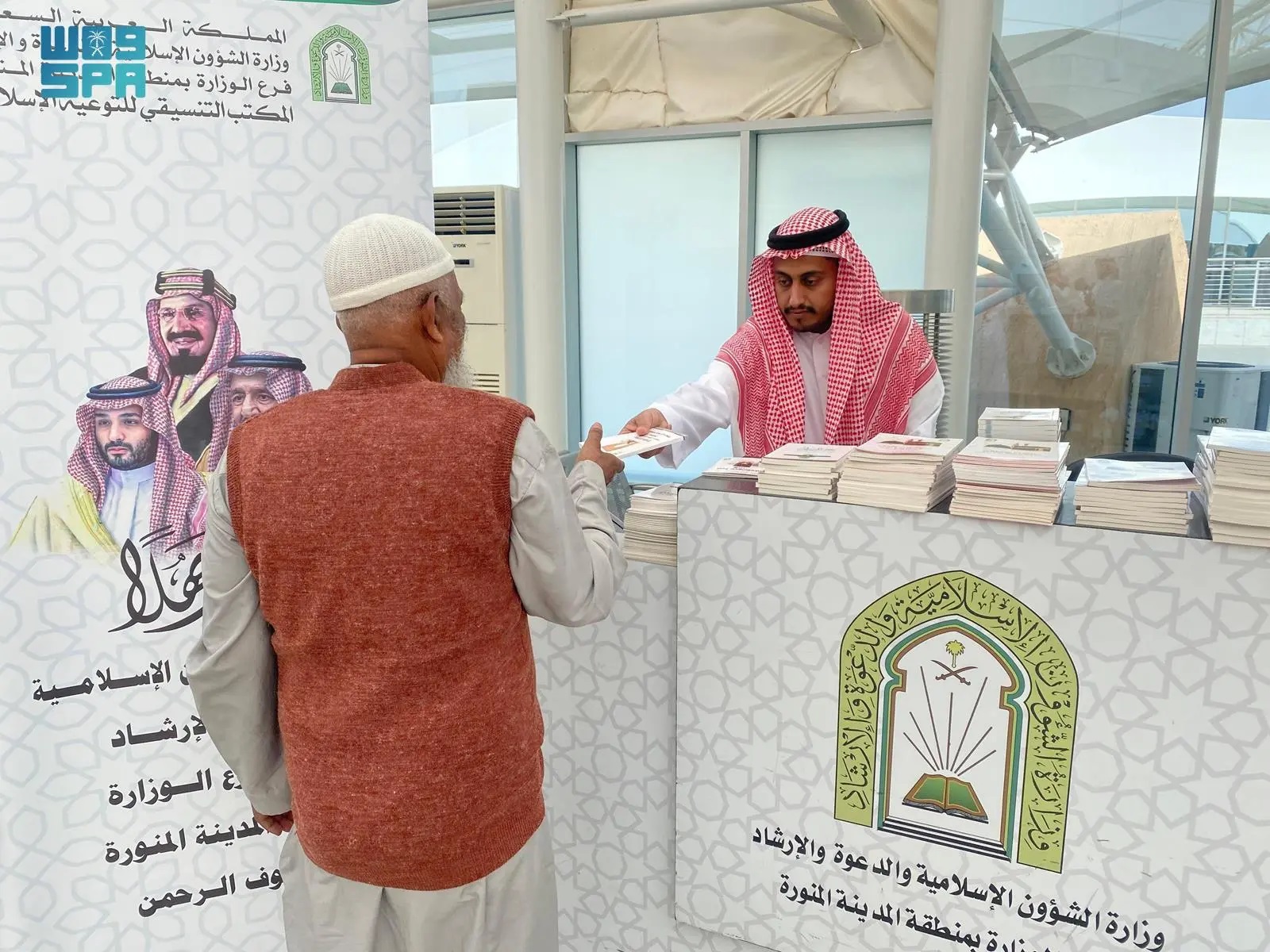 The Ministry of Islamic Affairs, Dawah and Guidance, represented by its branch in Madinah Region, continues to provide awareness and guidance services to pilgrims arriving through Prince Mohammed bin Abdulaziz International Airport, through dedicated awareness points in Arrival Halls (1) and (5), as part of its ongoing efforts to serve visitors and Umrah performers and guide them to perform their rituals in accordance with the Prophet’s Sunnah.